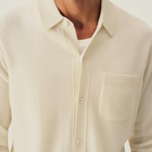 Classic fit long sleeve button-front sweater in a 12 gauge jersey knit from yarn-dyed long staple cashmere. Details include a three-button placket with shell buttons and ribbing at the cuffs and hem. Constructed with hand-linked seams for durability.