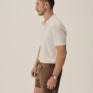 A fully fashioned polo that draws inspiration from the lifestyle surrounding Lake Como in the 1960s. Knit from an ultrafine blend of yarn-dyed organic Egyptian cotton and cashmere, spun in Italy. The polo features a classic fit with jersey body and sleeves, a rib-knit collar, cuffs, and hem.