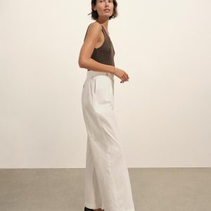 Slim-fit, vintage-inspired V-neck tank crafted from 100% Italian cotton yarn with a 3×3 deep rib structure. Designed with concealed chain threads and snaps beneath each shoulder to keep bra straps in place. Garment washed for a truly vintage, broken-in feel.