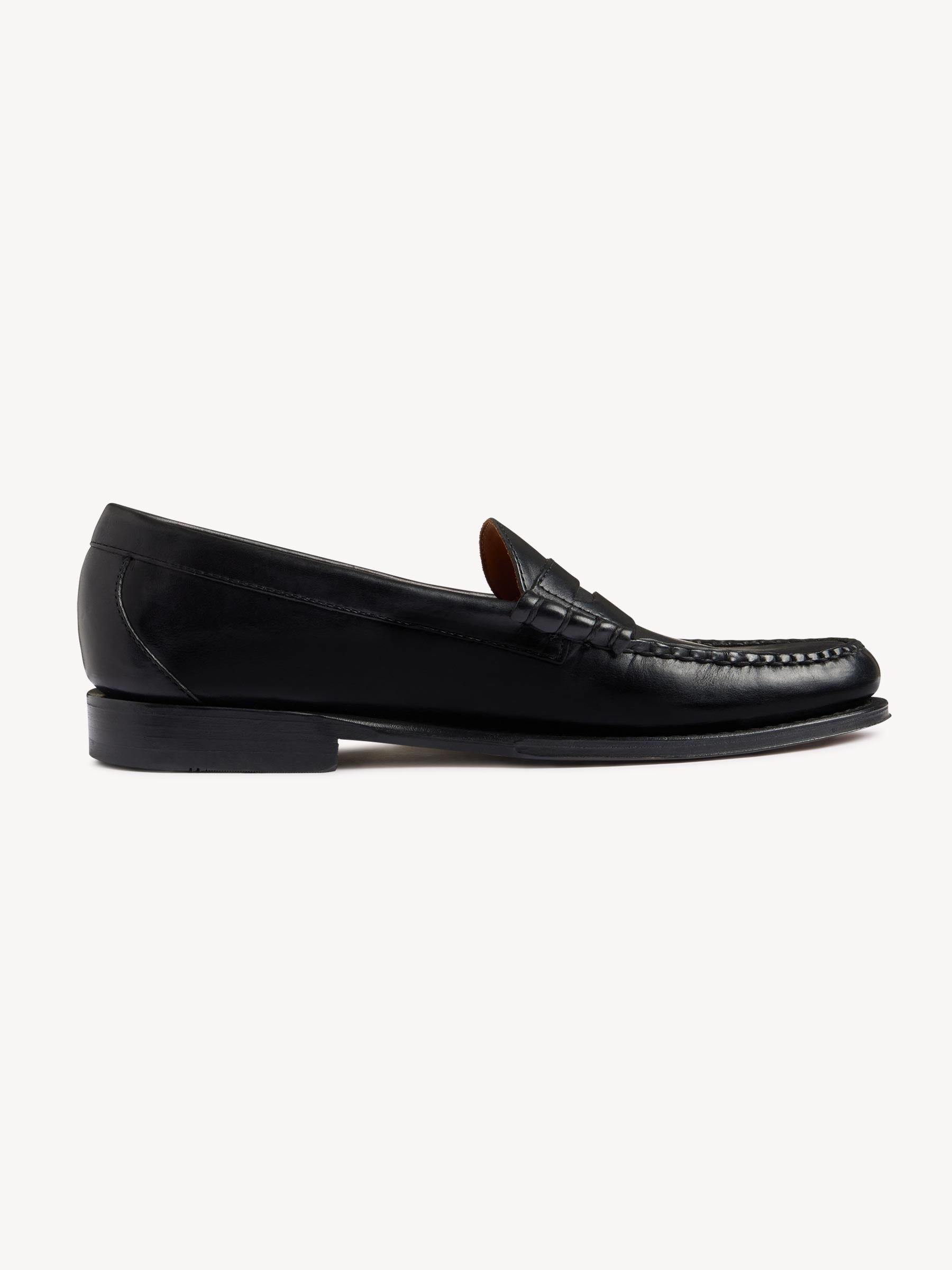Our collaboration with G.H. Bass recuts the iconic Larson loafer in Horween’s renowned Chromexcel leather, featuring traditional moccasin construction, a handsewn toe, and a Blake-stitched sole. Ironed edges on the outsole, a decorative lip around the toe, and the distinctive ‘beefroll’ penny strap complete the look. Fully lined.