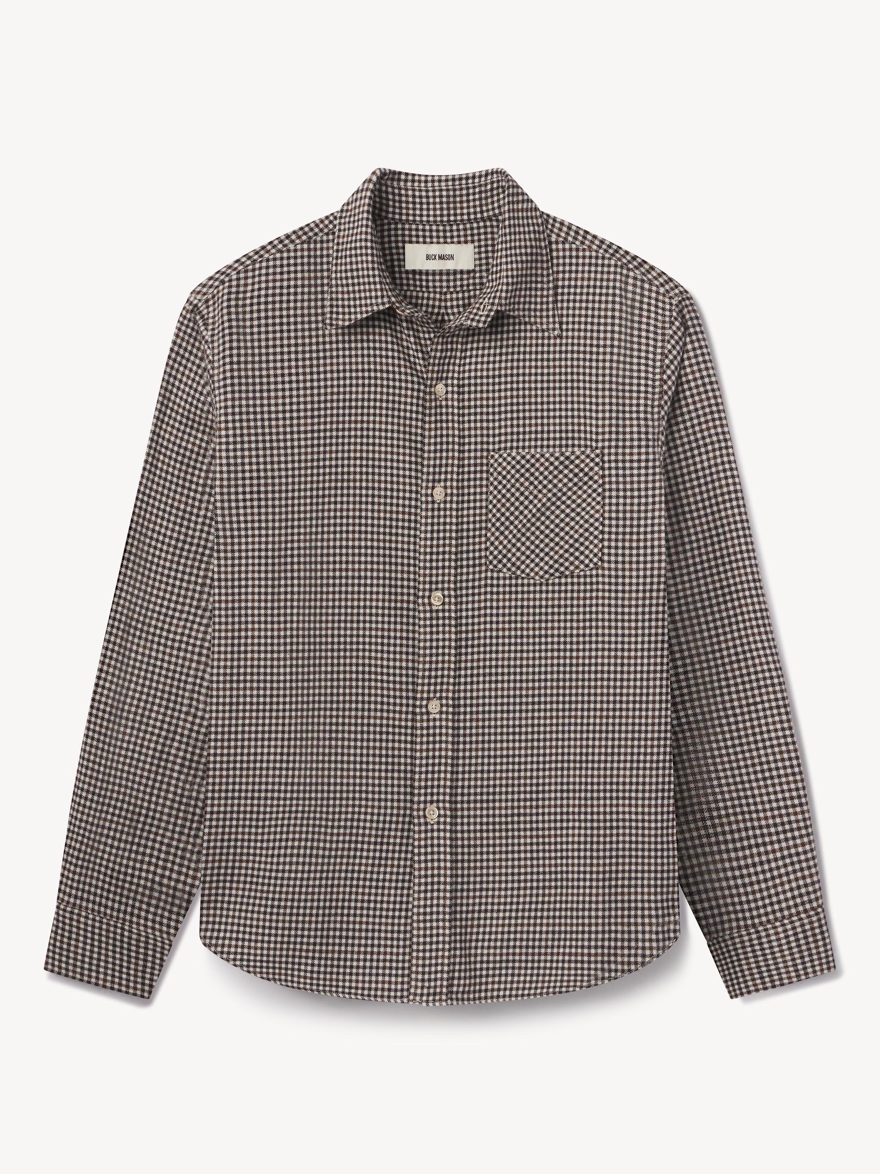 A modern flannel shirt cut from 4 oz. yarn-dyed cotton twill that’s been brushed on both sides for unparalleled softness. Features a single rounded pocket and shell buttons. Garment washed for a lived-in feel. The lightest flannel we make and the softest shirt in your closet.