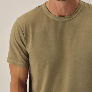 Classic fit short sleeve crewneck with a straight hem. Made at BM Knitting Mills in Mohnton, PA, from USA-grown and milled 140 GSM jersey knit from long-staple Supima cotton with a soft, smooth hand. Garment washed with enzymes and softener for a lived-in feel.