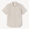 Classic fit button down collar shirt cut from a featherlight 3 oz cotton poplin. Details include mother of pearl buttons, a single scallop pocket, and a box pleat at the back. Constructed with clean finished seams. Garment washed for a lived-in look and feel.