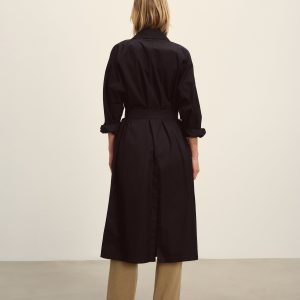 Relaxed, vintage-inspired trench coat cut from 5.7 oz. yarn-dyed cotton/poly twill weather cloth with a DWR finish. Features welt pockets, raglan sleeves, and a deep back vent. Details include a collar tab, button and tab cuffs, and a removable belt with leather buckle for cinching the waist. Size down for a more fitted silhouette.