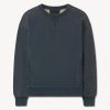 A midcentury-inspired quarter-zip collared sweatshirt made from plush, not-too-heavy, not-too-light, welterweight French terry. Features a foldover collar and front zip closure.